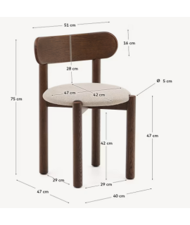 Charmante chaise au design traditionnel, belle et élégante. Fabriqué avec une structure en chêne massif avec une finition naturelle et un siège rembourré et un revêtement en tissu chenille doux et tendance. Envoûtant et raffiné, vous avez toute la tranquillité d'un siège confortable, agréable et relaxant. Ligne magnifique et confort extrême.
