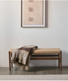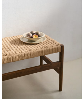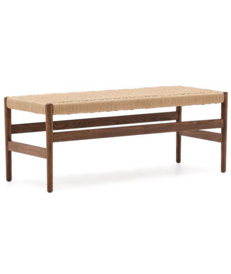 ELEONORA banc en chêne massif finition noyer et assise en corde