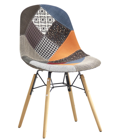 DADRO chaise rembourrée patchwork avec structure en bois et métal