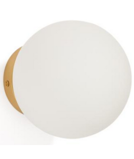 Une lampe de table en métal doré et un abat-jour en verre émaillé, qui crée un éclairage grâce à une forme géométrique circulaire. Parfait pour un goût industriel, minimal, nordique, moderne, vintage. Prédisposé pour lampe (non incluse) avec grand E27, faible consommation, led ou incandescente. Classe énergétique A ++