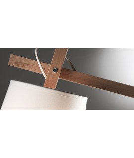 Con un'altezza vicina ai due metri, questa lampada è molto versatile: si può utilizzare per ottenere un apice di luce o per l'illuminazione ambiente. Struttua in metallo verniciato grigio o bianco, pararalume tessuto, braccio in legno naturale.