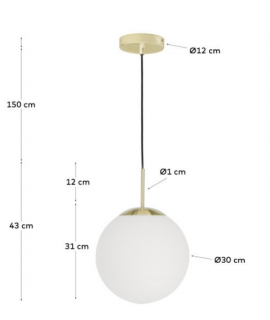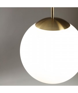 Genre minimaliste pour ce lustre en métal avec sphère en verre émaillé et détails dorés. Illumine et diffuse la lumière, de manière surprenante, dans toute la pièce. La beauté de l'abat-jour crée un effet agréable et intime.