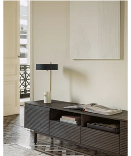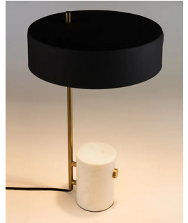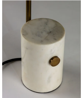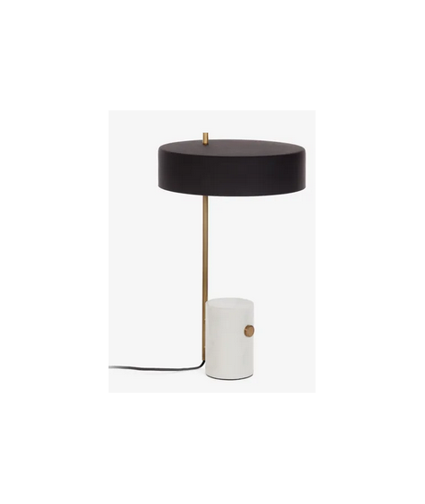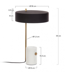 Magnifique lampe de table en marbre blanc, abat-jour en métal noir et tige en métal doré. Préparé pour lampe (non incluse) avec gros raccord E27 et type : basse consommation, led ou incandescent. Toutes les mesures sont sur la photo de la fiche technique.
