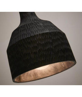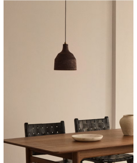 Un lustre captivant avec un abat-jour en bois noir. Cette pièce artisanale obtient sa finition foncée grâce à la pyrogravure. Élégante et captivante, raffinée et intrigante, la lumière qu'elle diffuse et l'atmosphère qu'elle crée sont magnifiques. Que ce soit pour un intérieur classique ou moderne, ses lignes épurées et élégantes en font un choix idéal pour décorer avec goût n'importe quel espace.