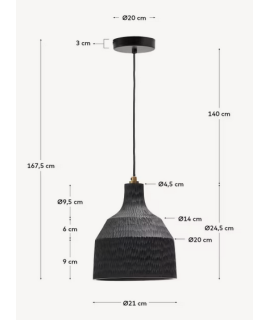Lustre beau et raffiné, avec abat-jour en bois noir. Une magnifique lampe à suspension qui, avec sa ligne essentielle, s'intègre bien dans n'importe quel environnement. Pour ampoule E27 max. 25W (non incluse). Toutes les mesures sont sur la photo de la fiche technique.
