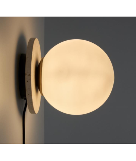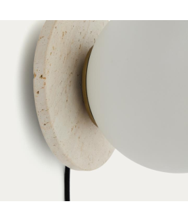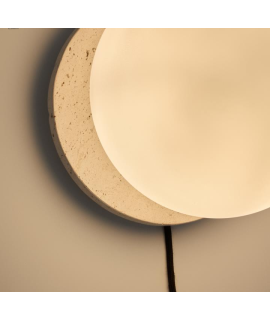 SLIDER applique murale en travertin et sphère en verre dépoli