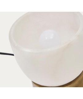 Lampe de table raffinée, élégante et très fonctionnelle. Fabriqué en albâtre, un matériau naturel qui, lorsqu'il est exposé à la lumière, crée des eaux irrégulières et des ombres qui ajoutent de la chaleur à l'environnement, et une base en métal avec une finition en laiton. L'abat-jour est rotatif et peut être placé dans différentes positions.
