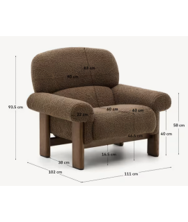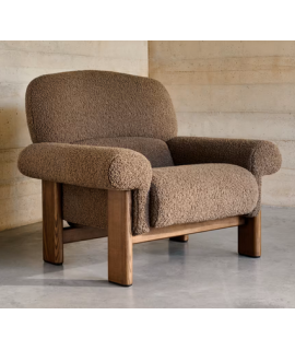 Belle et solide fauteuil, avec une ligne élégante et un look renouvelé, inspiré du genre des années 30. Très raffiné, avec une structure solide en bois en frêne finition noyer, il se distingue à la fois par son esthétique et par son confort. Avec assise et dossier rembourrés recouverts de tissu bouclé marron. Intrigant, avec un design essentiel et un caractère fort.