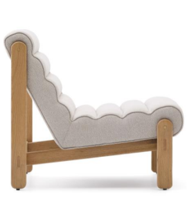 GENGA fauteuil en bois de chêne massif finition naturelle et tissu éco-shearling blanc