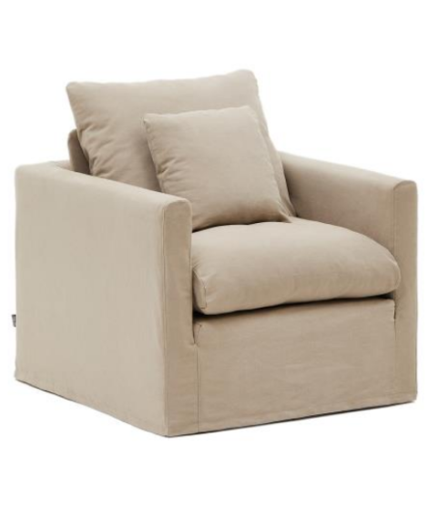 Fauteuil raffiné aux lignes épurées, très confortable et enveloppant. Structure robuste en bois, rembourrage en mousse, assise moelleuse et revêtement en tissu mélangé coton et lin. Entièrement déhoussable et lavable. Deux coussins inclus. Charge maximale : 130 kg. Fabriqué en Europe selon des procédés artisanaux pour réduire les émissions de CO2 et l'impact environnemental. Vous trouverez ci-dessous tous les accessoires assortis de la même gamme. Toutes les dimensions sont indiquées sur la photo de la fiche technique.
