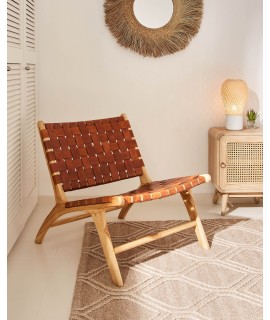 Un charme unique et incontesté pour ce fauteuil confortable composé de lanières de cuir marron tressées à la main et d'une structure en bois massif. Un véritable chef-d'œuvre, qui ajoutera du caractère à votre environnement. Vous trouverez ci-dessous tous les accessoires de la même ligne à assortir. Toutes les mesures sont sur la photo de la fiche technique.