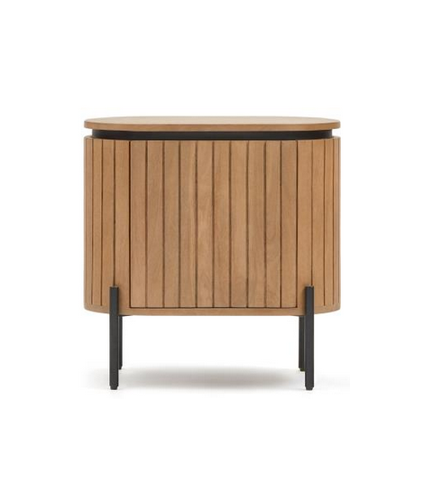 Ligne captivante pour cette table de chevet élégante et prestigieuse. En manguier massif formé de lamelles juxtaposées, avec porte et pieds en métal noir. Un meuble merveilleux, qui transmet la luminosité à l'environnement.