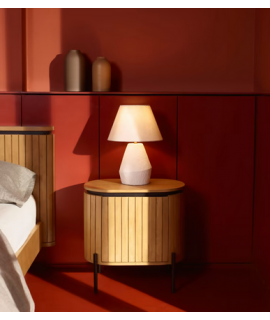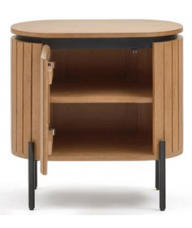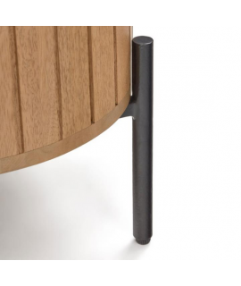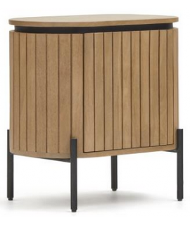 Table de chevet intrigante et particulière, avec porte et étagère centrale. Fantaisiste et raffiné, granuleux et dynamique, qui mise sur la praticité et un design élégant. En bois de manguier massif formé par des bandes combinées avec un effet de lattes et des pieds en métal noir. Vous trouverez ci-dessous les accessoires de la même ligne à assortir. Toutes les mesures sont sur la photo de la fiche technique.