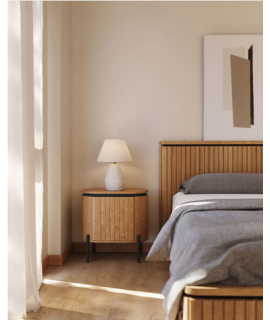 BASCO table de chevet en bois massif effet lattes et métal noir design living house