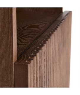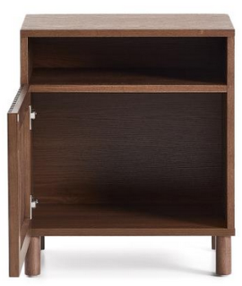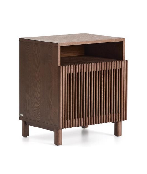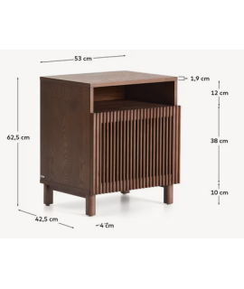 Table de chevet raffinée, d'un agréable style colonial avec une finition raffinée à lattes artisanales, qui avec la chaleur du bois de frêne finition noyer lui confère un design intemporel.