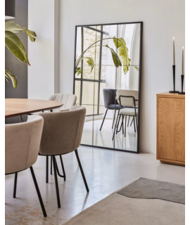 Miroir de sol raffiné avec cadre en métal noir. Adapté à tout type d'environnement, il procure un effet de lumière agréable.