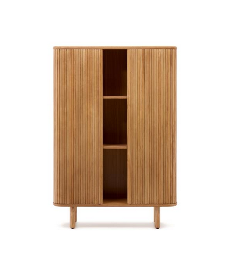 Buffet haut intrigant et particulier, savoureux et raffiné, audacieux et dynamique, qui met l'accent sur la praticité et le design élégant. Réalisé en placage de frêne finition naturelle avec bandes effet lattes. Ci-dessous vous trouverez les accessoires de la même ligne assortis. Toutes les mesures sont sur la photo de la fiche technique.