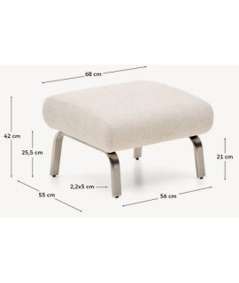 Ce pouf repose-pieds offre une assise moyenne confortable grâce à un mélange de sangles, de ressorts et de couches de mousse polyuréthane haute densité. Son revêtement est fabriqué à partir de tissu recyclé provenant d'un fournisseur certifié, garantissant une utilisation réduite des ressources et des matières vierges, et certifié pour une production sûre et respectueuse de l'environnement. Le tissu est en chenille déperlante. Pieds en acier inoxydable brossé. Élégant et moderne, il apportera une touche années 50 à votre intérieur. La photo des spécifications techniques présente toutes les dimensions.