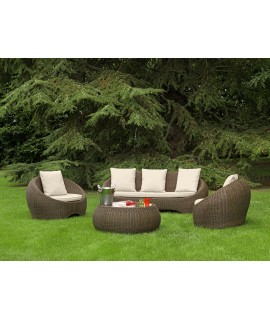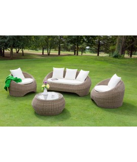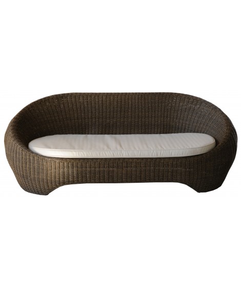 La forma spaziale e tondeggiante di questo divano vi farà innamorare a prima vista. Perfetto sia per gli interni che per esterni. E' disponibile anche la poltrona e il tavolino abbinati. Realizzato in midollino sintetico per esterno con cuscino di seduta compreso. Per i cuscini quadrati volanti vedi ACCESSORI. Misure cm 193 x 85 x 78 h.