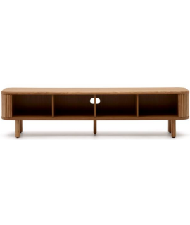 Meuble TV intrigant et particulier, savoureux et raffiné, audacieux et dynamique, qui met l'accent sur la praticité et le design élégant. Réalisé avec 2 portes coulissantes, en placage frêne finition naturelle avec bandes effet lattes. Ci-dessous vous trouverez les accessoires de la même ligne assortis. Toutes les mesures sont sur la photo de la fiche technique.