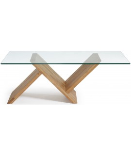 Table basse de charme, prestigieuse et raffinée. Fabriqué avec une base particulière et excentrique en bois de chêne et un plateau en verre trempé. La majesté du bois transmettra de la chaleur à votre environnement, tandis que la préciosité du cristal vous apportera lumière et élégance. Raffiné et de grands meubles.