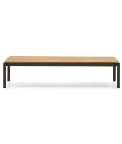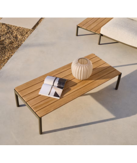 ARIO Table basse en aluminium vert 150x63 cm avec plateau en bois de teck pour terrasse de jardin extérieure