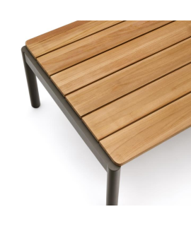 Fabuleuse table basse en aluminium et plateau en bois de teck. Une structure légère, raffinée et intrigante, c'est une superbe décoration pour vos espaces. Un style moderne et charmant qui se distingue par son design léger et contemporain. Convient pour l'intérieur ou l'extérieur, idéal pour le jardin ou la terrasse.