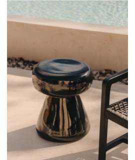 BRUN table basse en céramique noire brillante Ø 38 cm design maison intérieur ou extérieur