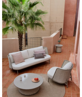 Fauteuil table basse qui ajoute une touche de charme intemporel à n'importe quelle pièce. Fabriqué avec une structure en aluminium gris tourterelle et du rotin synthétique tressé à la main. Un style charmant qui se distingue par son design léger et contemporain. Convient pour une utilisation extérieure ou intérieure, idéal pour le jardin ou la terrasse.