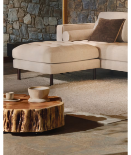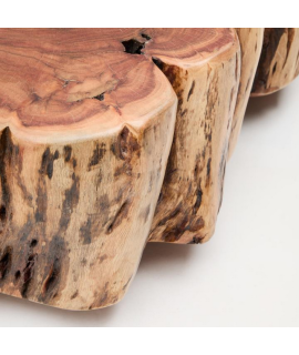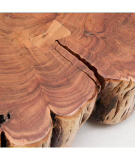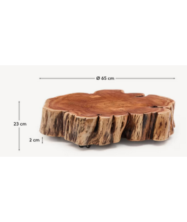 Table basse avec structure formée par une rondelle épaisse et large en bois d'acacia massif et des roulettes confortables. Artisanat fabuleux. Beau et raffiné dans tout type de mobilier.