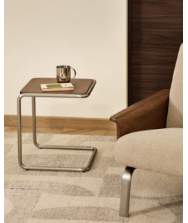 Une table basse élégante et captivante, disponible en deux hauteurs. L'aspect naturel du plateau en placage de noyer foncé et du cadre en acier inoxydable brossé crée un contraste saisissant. Son style minimaliste et intemporel, allié à une élégance innovante, s'intègre parfaitement à un intérieur moderne.