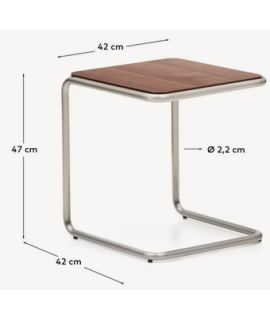ANDER table basse h 47 ou 60 cm plateau en placage de noyer et structure en acier inoxydable