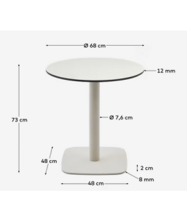 Une belle table élégante, pratique et résistante. Idéal pour les bars, restaurants, hôtels, en colonne ronde en acier enduit de poudre blanc. Plateau rond en HPL blanc, un matériau très pratique, résistant aux taches, aux chocs et à l'abrasion, aux hautes températures, aux antibactériens et particulièrement adapté à une utilisation en extérieur.
