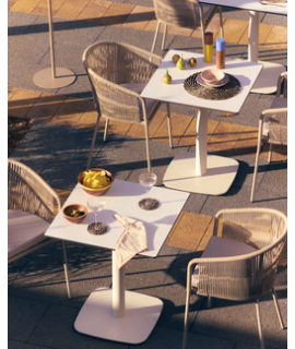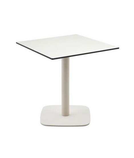 DANTS table avec plateau en hpl blanc 68x68 cm et piètement en métal verni blanc pour bars glaciers et restaurants