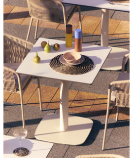 Une belle table élégante, pratique et résistante. Idéal pour les bars, restaurants, hôtels, en colonne ronde en acier enduit de poudre blanc. Plateau carré en HPL blanc, un matériau très pratique, résistant aux taches, aux chocs et à l'abrasion, aux hautes températures, aux antibactériens et particulièrement adapté à une utilisation en extérieur.