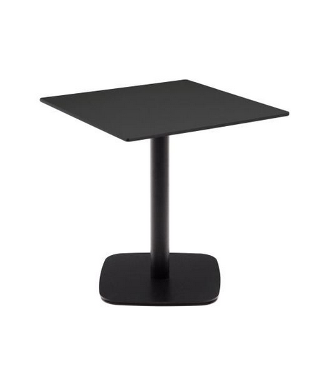 Une belle table élégante, pratique et résistante. Idéal pour les bars, restaurants, hôtels, en colonne ronde en acier enduit de poudre noire. Plateau carré en HPL, un matériau très pratique, résistant aux taches, aux chocs et à l'abrasion, aux hautes températures, aux antibactériens et particulièrement adapté à une utilisation en extérieur.