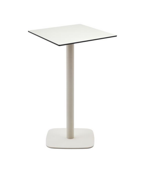Une belle table haute élégante, pratique et résistante. Idéal pour les bars, restaurants, hôtels, en colonne ronde en acier enduit de poudre blanc. Plateau carré en HPL blanc, un matériau très pratique, résistant aux taches, aux chocs et à l'abrasion, aux hautes températures, aux antibactériens et particulièrement adapté à une utilisation en extérieur.