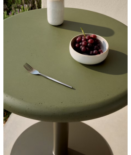 HARKU table avec plateau en béton vert Ø 70 et piètement en métal peint en vert pour bars glaciers restaurants