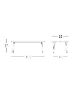 BREZZA Table basse 110x55 pieds en acier et plateau en stratifié ou béton choix de couleur pour l'intérieur et l'extérieur