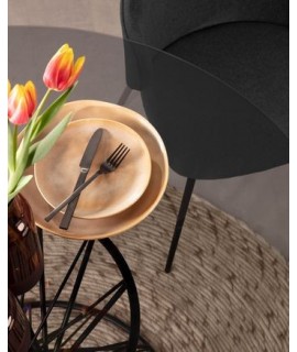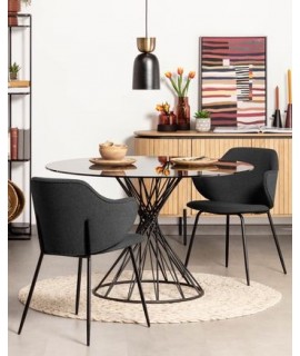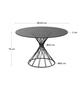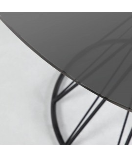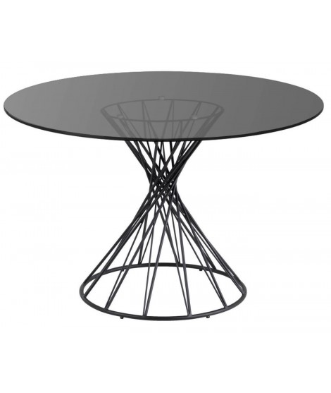 CROMO Table plateau diam 120 cm en verre fumé et piètement en métal noir