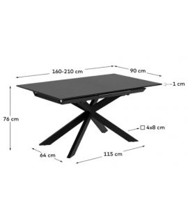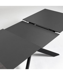 MILANO table 160 extensible 210 cm avec plateau en vitro et pieds en métal peint avec mobilier de designer