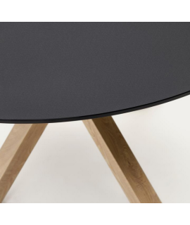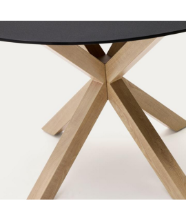 ZENIT table Ø 120 o 150 cm plateau en verre noir et piètement en métal couleur bois