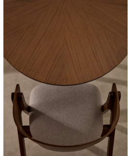 BATILDE table Ø 120 plateau plaqué noyer et pieds en bois massif living design