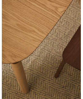 Table en placage de frêne naturel et pieds en bois massif finition frêne naturel. Son design nordique, essentiel et raffiné, s'harmonise parfaitement avec le reste du mobilier.