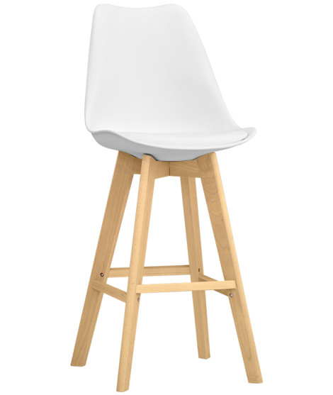 Si vous recherchez du confort et un design frais aux accents nordiques, nous vous proposons ce tabouret avec dossier, hauteur d'assise 74 cm. Fabriqué avec des pieds en bois de hêtre massif et une coque confortable en polypropylène et coussin en éco-cuir. Ci-dessous, la chaise de la même gamme à assortir.