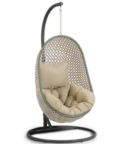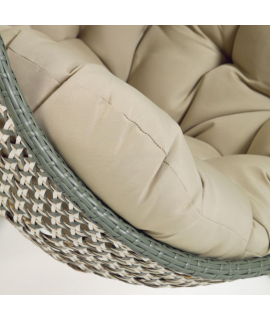 PORTLAND suspended armchair with foot in woven rattan with cushions included for indoor or outdoor