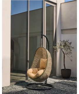 With the characteristic colonial essence, this suspended armchair with base, in hand-woven rattan, with removable cushions included. Even on the terrace it guarantees the comfort of your relaxation both indoors and outdoors. In the photo of the technical sheet all the measures are indicated.