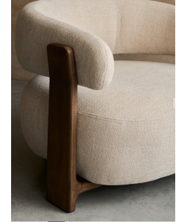 LYNCH armchair in beige chenille effect fabric and legs in solid ash wood with walnut finish