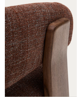 Beautiful and solid armchair, with an elegant line and a renewed look, inspired by the Scandinavian genre of the 70s. Very refined, with a strong structure in solid ash wood with walnut finish, it stands out for both its aesthetics and comfort. With padded seat and backrest covered in brown chenille effect fabric. Intriguing, with an essential design and a strong character.