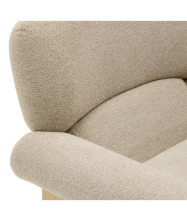 GOZO armchair in beige chenille effect fabric and legs in solid natural ash wood